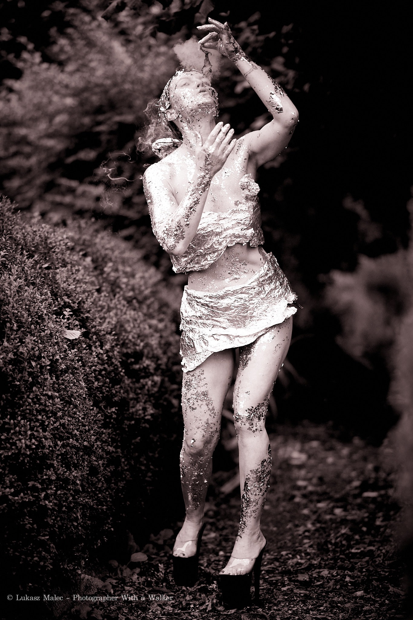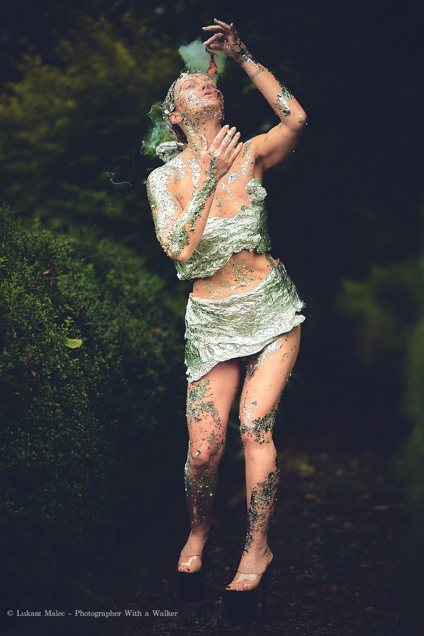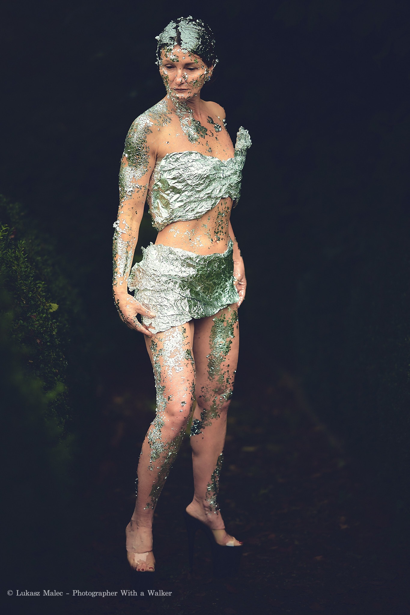 Vida moved through this fairy-tale setting with grace and naturalness, as if she truly was the spirit of this place. Her silver dress shimmered in the sunrays filtering through the leaves, and every her gesture seemed part of a larger, magical story. I photographed her among the old trees, by the rusty gate, in the room with the wardrobe that could be a gateway to another world.